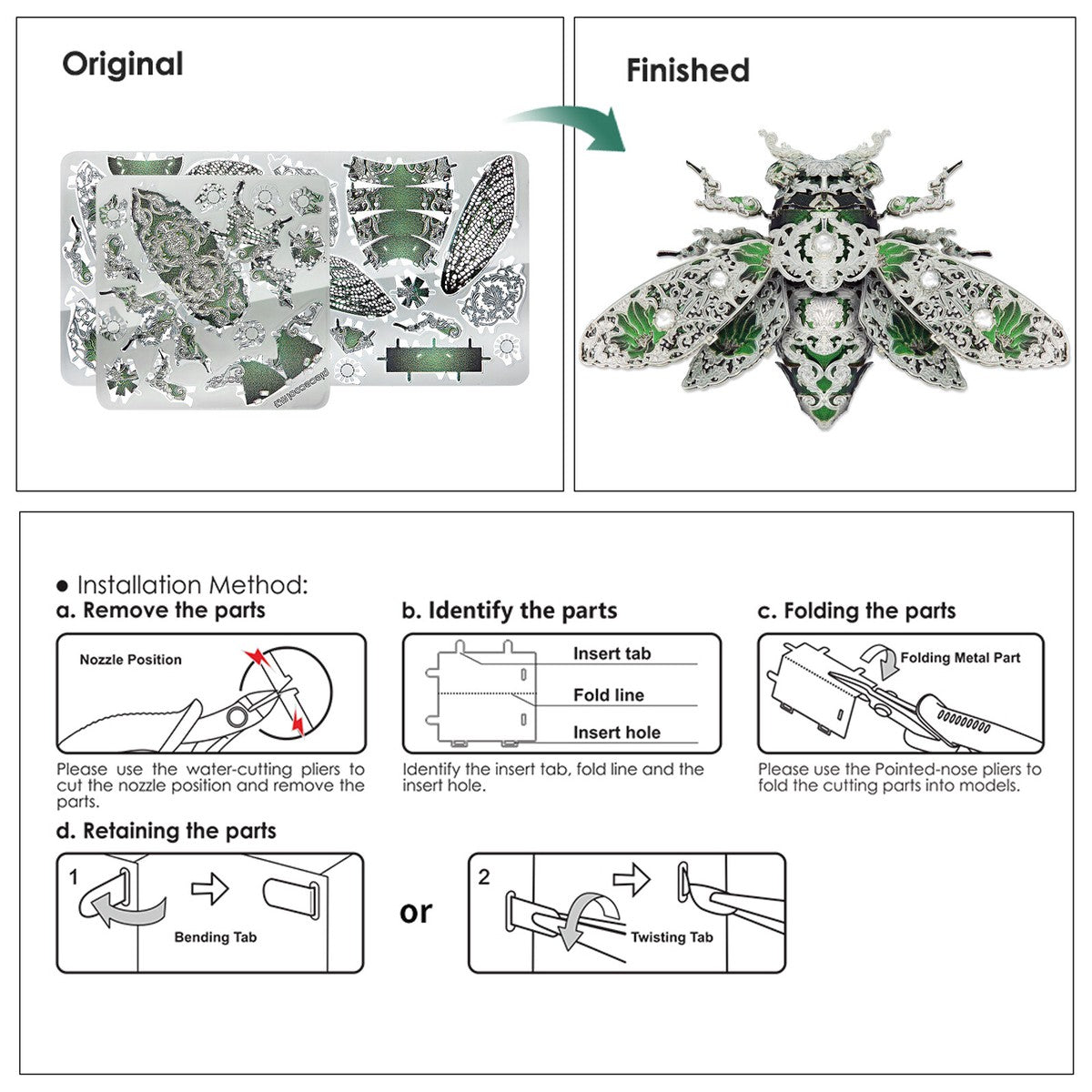 Il Piececool “Cicala dalle ali sottili – Giada” (M010-SN) è un modellino 3D in metallo della serie M, dedicato al mondo degli insetti. La palette è dominata da un elegante verde giada e le ali sottili sono rese con un effetto leggero e realistico, che dà al pezzo un aspetto raffinato.